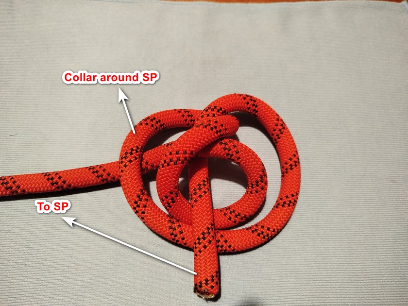 Note the severe constriction effect of SP’s perpendicular shear force on the first returning line, subjecting it to a U(!!!) shape curving, generating also the most favourable conditions for collar decompression (more stress=more slack for the returning collar or the crossing knot collar by extension).