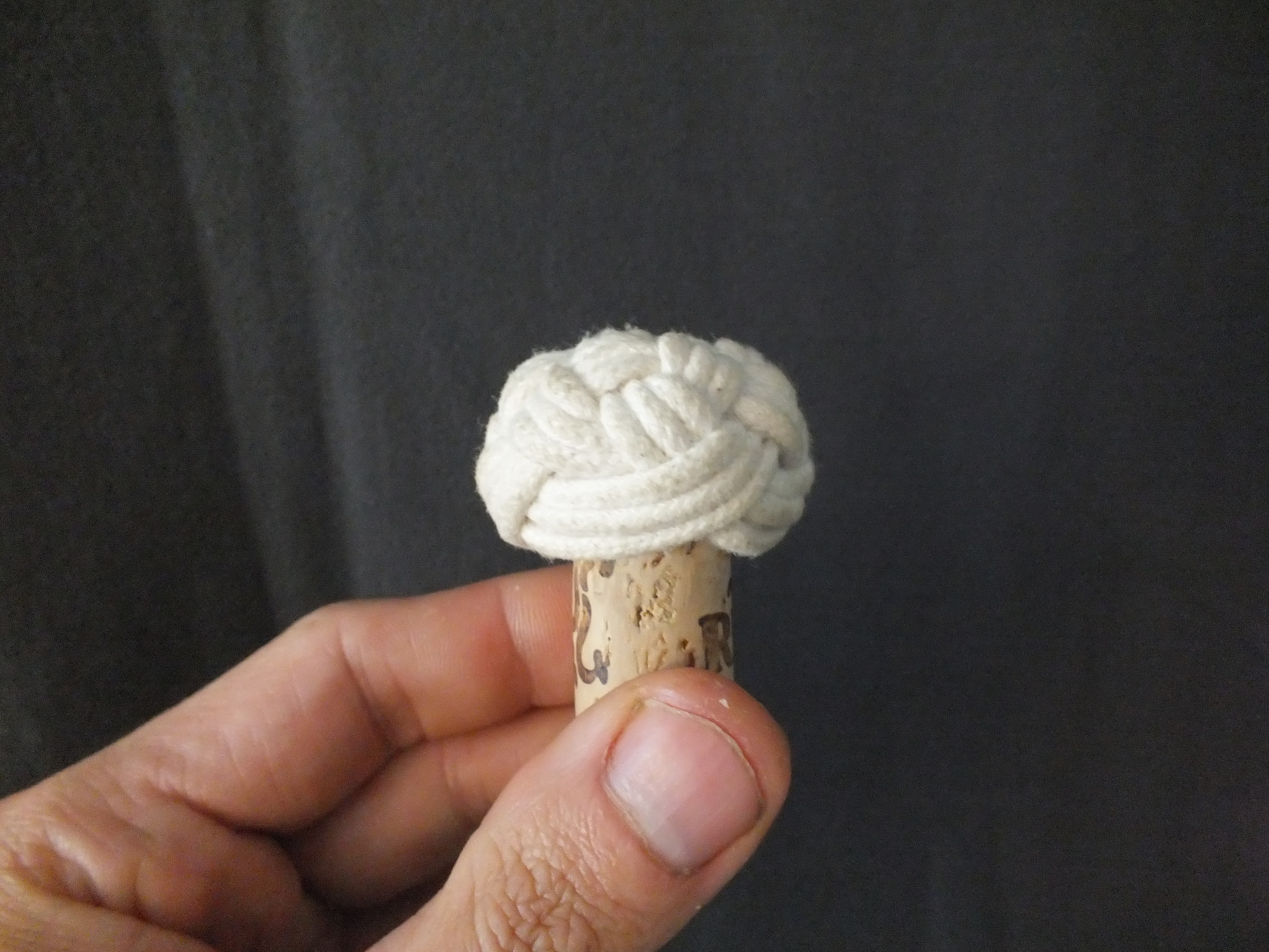 30-facet Globe Knot (5 passes) in 5mm linen 3-strand and cotton ‘inlay’