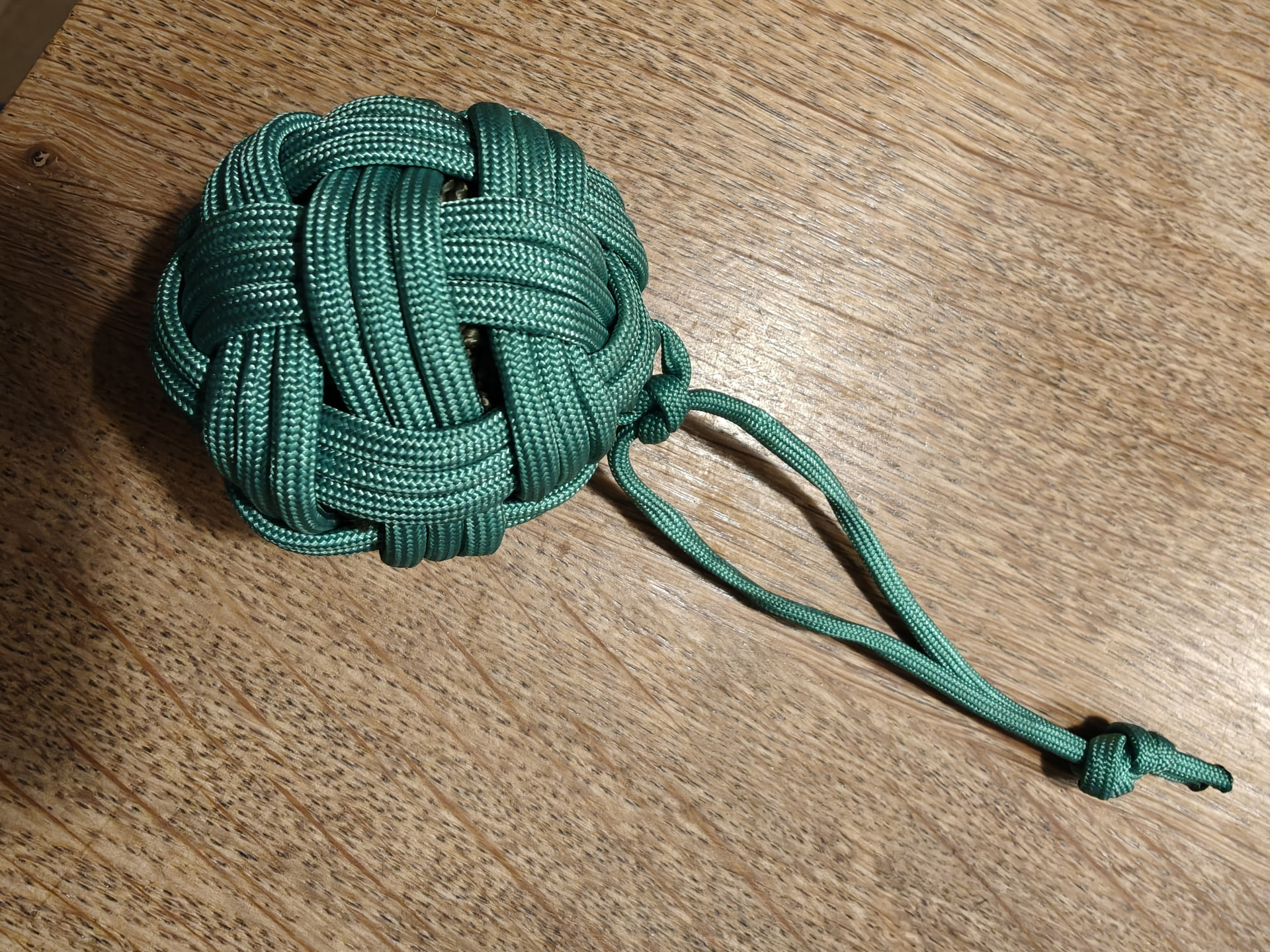 30-facet Globe Knot (3 messy passes) in green 4mm paracord