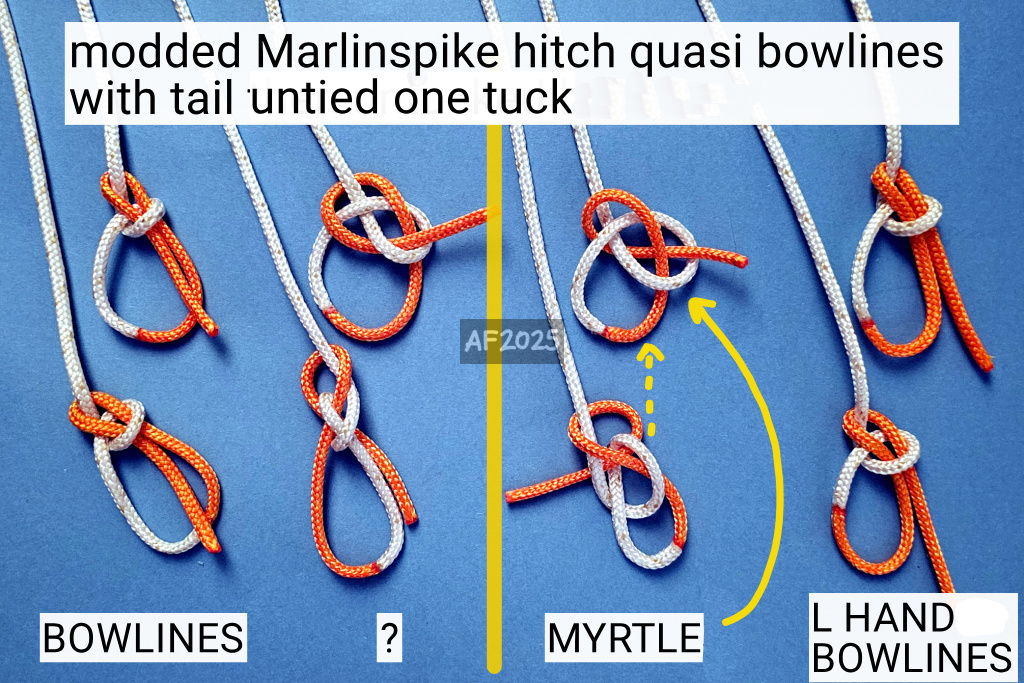 I believe these structures are not well documented, the closest thing i have seen is the following Alan Leeâs marlin spike loop, where the returning structure is actually a loop and not a bight.Maybe the loop is a more effective returning binder with less distortion?Canât be 100% sure.