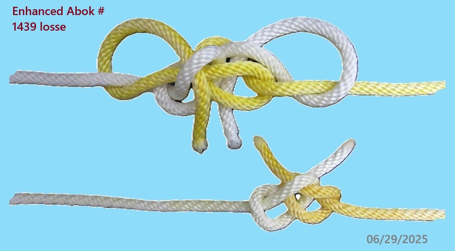 More clearly “discovery” comes in my finding in actual-factual PP arbor tape tying up newly planted saplings the what-I-call “Tail-Loaded Bowline” (‘ TLBwl’), where, yes, it is a BWL #1010 loaded on the Tail, in such a way as to convert the 1010 Collar into a Nipping Loop –not an arc, which naturally occurs and gives that “Crabber’s Eye Knot” sort of running & locking structure.
