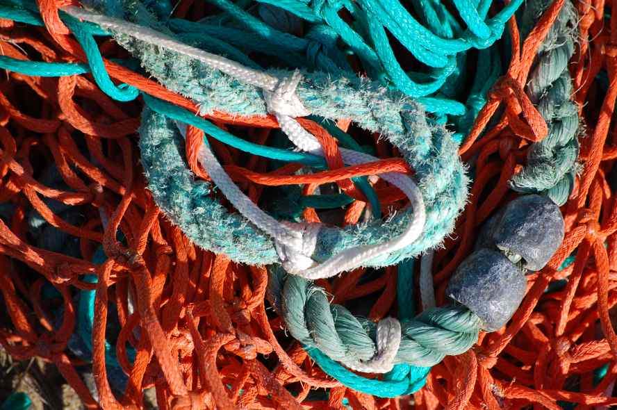 start of a big net (feeding into a finer, tarred-nylon laid cord,