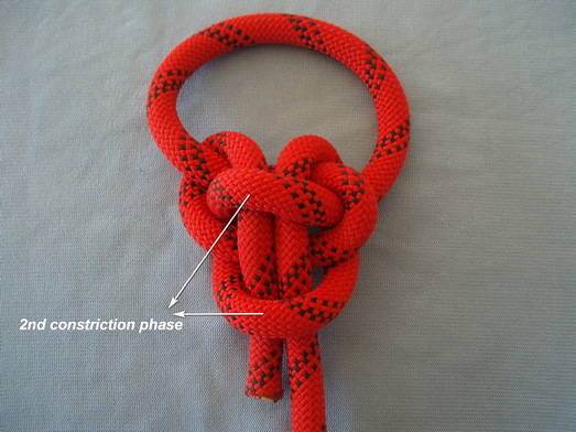 I count eight contact/constriction points in total , with this interweaving, three in the snap stage, and five in the Cask stage, which leads me to believe that this is a super inherently secure, jam proof, bowline.