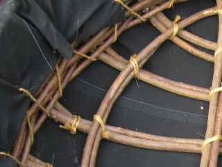 The branches of the both sides of the frame are bend together and tied at regular interfalls to their opposite number and ones they cross underway.