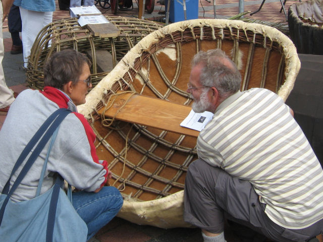 Very interesting photos! 8) How on earth do they get the willow twigs to adopt those shapes? ??? Do they use steam bending or is there some form they have to build and then let it sit there for a while? Were you able to see the base of the curragh being woven and tied in place Willeke? Did they delioberately tie all the crossings on the same diagonal? How does that affect the tendency to warp? How fortunate you are to have seen such work going on - I’ll have to search out some of those activities and find out more. I have made some pieces using pine needles, but I have never seen anything like the Fiat car being made from willow twigs - remarkable! ;D